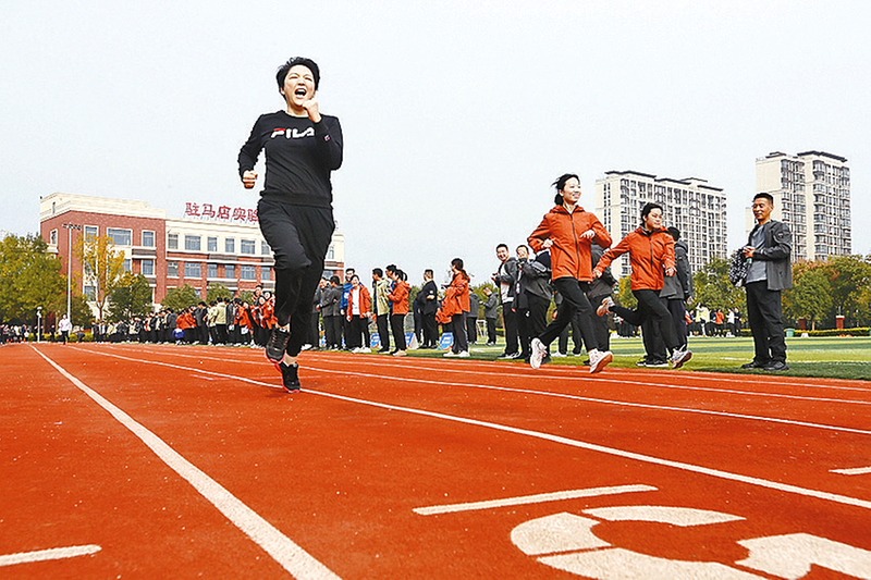 奋力冲刺100米。 为丰富职工业余文化生活,激发全员干事创业热情、增强团队凝聚力,10月26日,中国银行驻马店分行举办了“以运动之名 赴奋斗之约”第一届职工运动会。来自全辖16支代表队的200多名干部职工齐聚赛场,展开了一场别开生面的竞技盛宴。