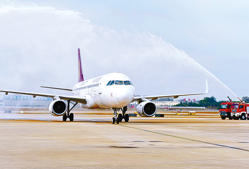10月26日,从金边飞来的柬埔寨国家航空的客机抵达福州长乐国际机场时举行过“水门”仪式。