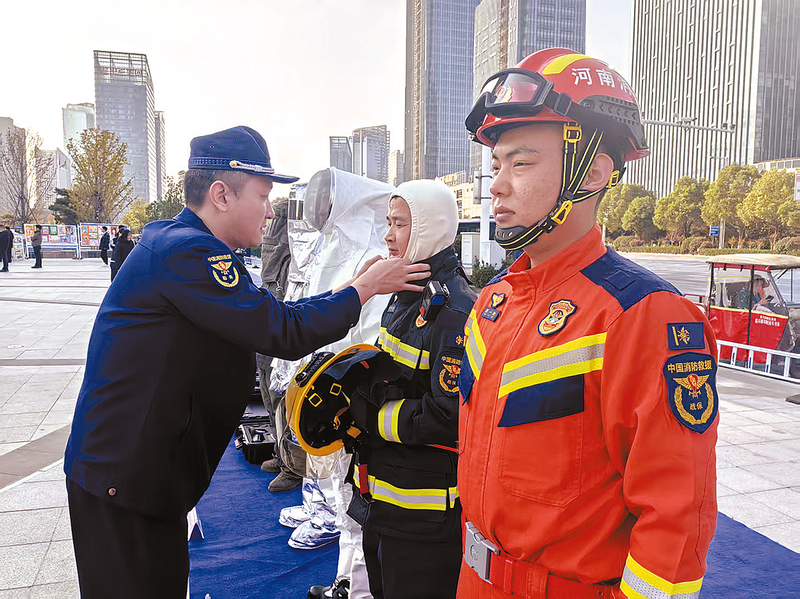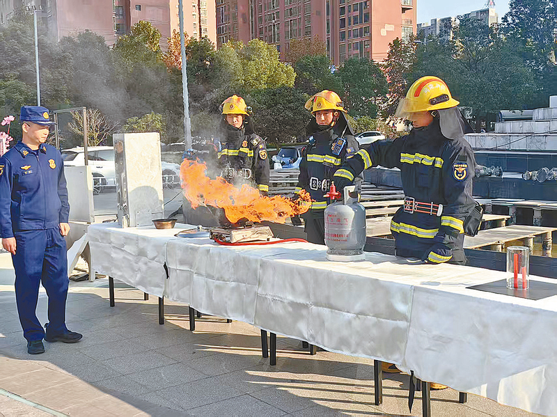 普及灭火知识。 11月4日,我市在天中环球港开展“119”消防宣传月活动。今年消防宣传月的主题是“全民消防 生命至上——安全用火用电”。