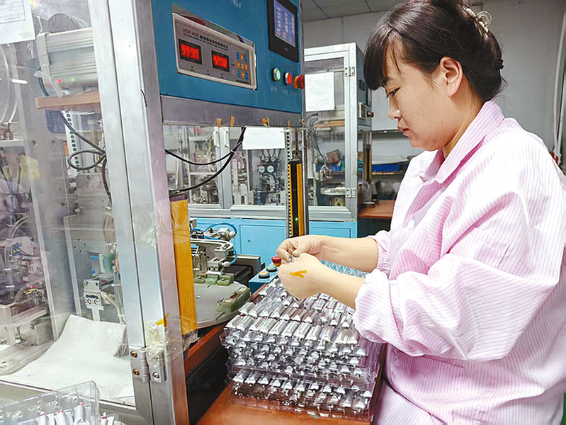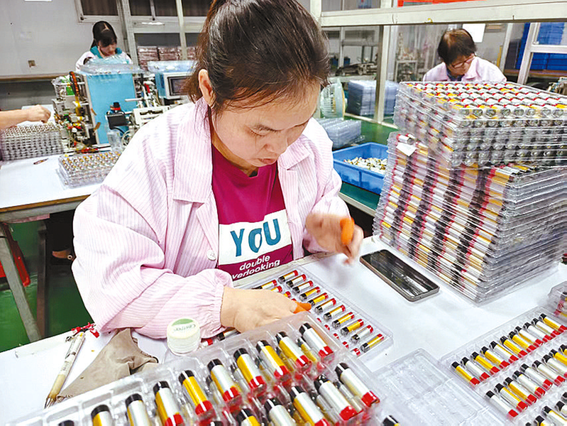 近日,在泌阳县羊册镇古城村泌阳开源科技有限公司生产车间,200多名工人正在专注赶制玩具锂电池订单。该公司以“研发在外、生产在家”模式,日产锂电池30多万支,年产值4000多万元。依托“企业+村集体+农户”模式,该公司带动羊册、郭集等周边乡镇200多户群众家门口就业,成熟工人月工资在5000元以上,为乡村振兴筑牢产业根基。