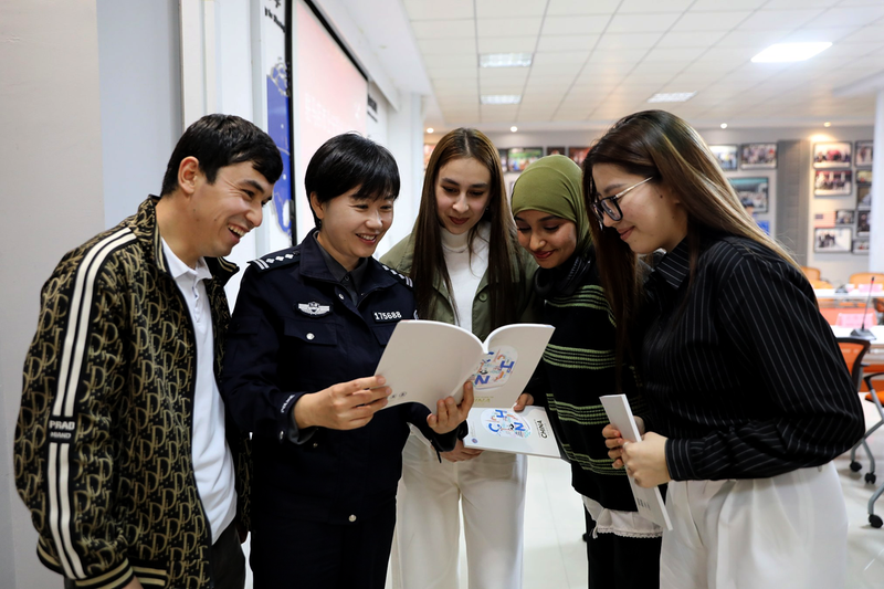 近日,市公安局出入境管理支队民警向黄淮学院外籍师生发放在华生活、学习和工作指南手册。手册内容涵盖签证办理、交通出行、文化习俗等实用信息,便于外籍师生快速适应本地生活。