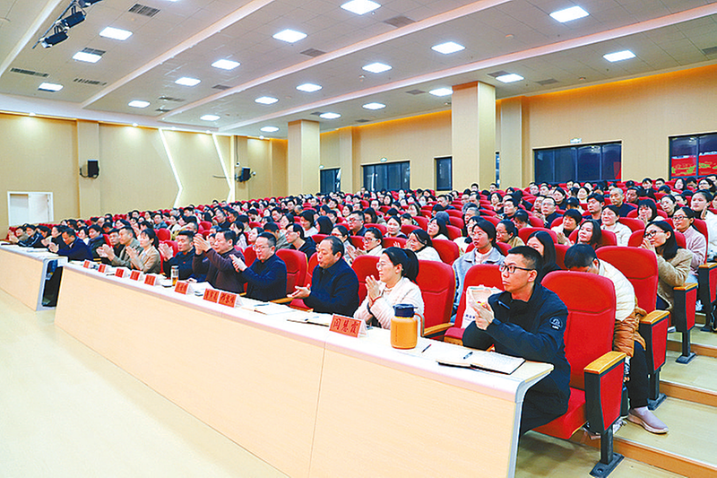 平舆一高北校区报告厅师生满座,认真聆听励志宣讲。 李亚超 摄