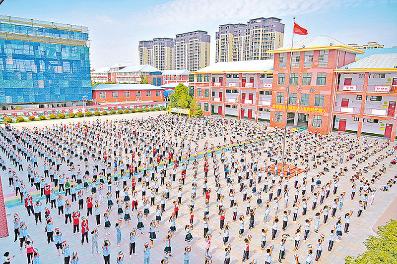 学生课间操快乐成长。(资料图片) 初冬时节,平舆大地,天高云淡,清风拂面。漫步城乡之间,一幅幅动人的画卷徐徐展开:城区道路整洁宽敞,街角公园草木葱茏,背街小巷干净整洁;乡村庭院错落有致,文明广场欢声笑语,孝善宴里暖意融融。巷陌间,“好人”故事广为流传,志愿服务随处可见,文明礼让成为常态。一幅以民生为笔、文明为墨的幸福画卷,正在平舆大地上徐徐铺展。