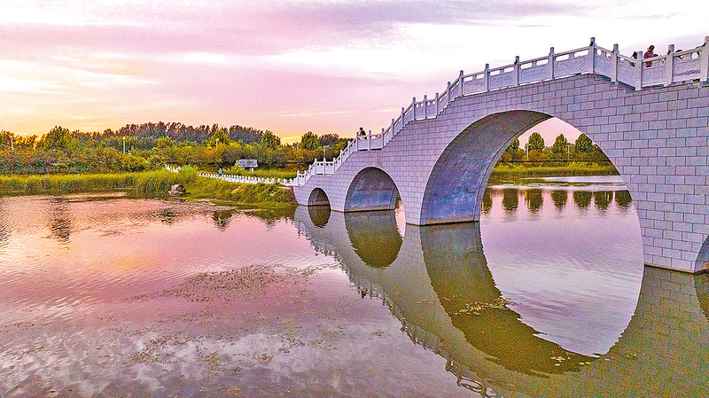 拱桥“醉”美晚霞。 本报记者 许 静 通讯员 杨 杰