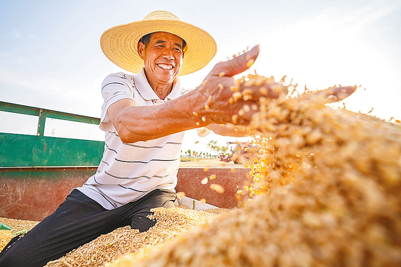 小麦喜获丰收,农户笑开颜。(资料图片)