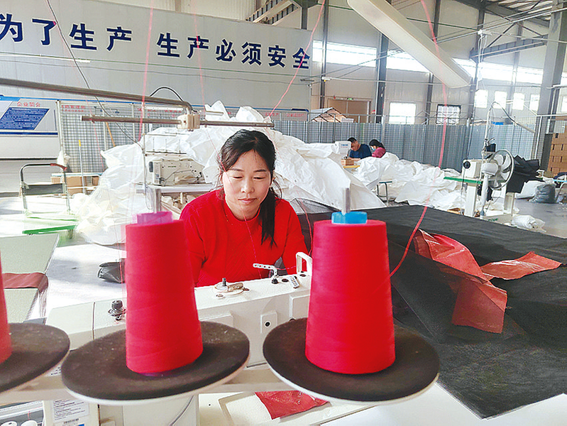 11月17日,正阳县先进制造业开发区机械制造产业园内,河南柯迪休闲用品有限公司员工在车间忙生产。该公司依托浙江柯迪休闲用品有限公司的全额投资和成熟资源,稳定形成批量生产能力,为当地提供1200个就业岗位。