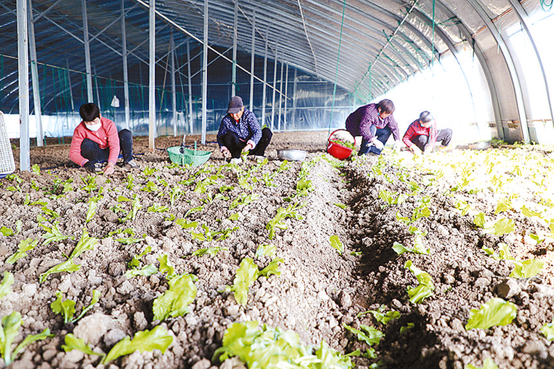 11月20日,正阳县熊寨镇王楼村160亩蔬菜种植基地里,工人正在忙着管护越冬蔬菜。基地自2022年底建成,以规模化科学化种植稳质增量,为村民提供就业岗位,助力乡村振兴。