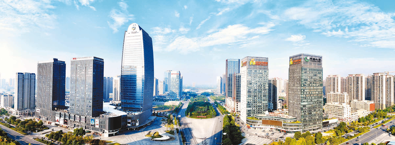 市商务中心区。 每个五年,都是一次跨越。时序更替中,“十四五”规划已完成了精彩作答。这个五年,驻马店市城乡一体化示范区(以下简称示范区)在接续奋斗中砥砺前行,各项事业取得了显著成效,为全区经济社会高质量发展奠定了坚实基础。