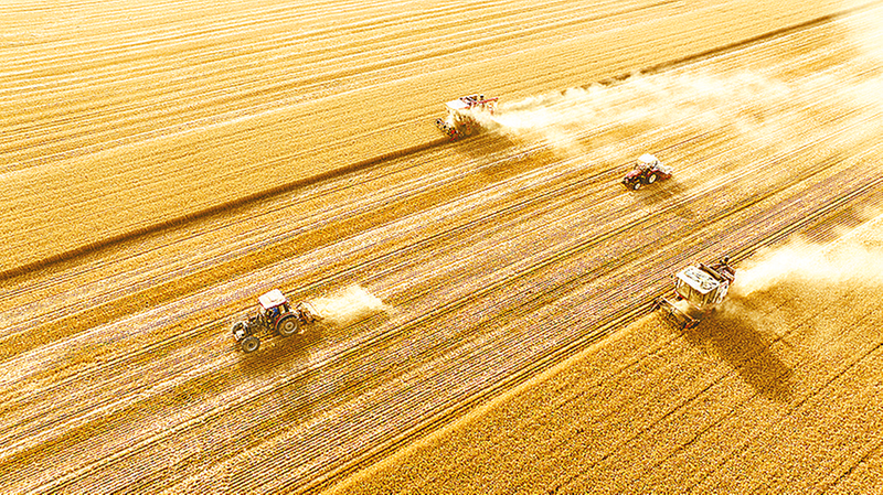 2025年6月4日,在河南省商丘市梁园区李庄镇潘堂村志诚种植农民专业合作社,农机手操作机械在农田作业(无人机照片)。 新华社发 新华社记者