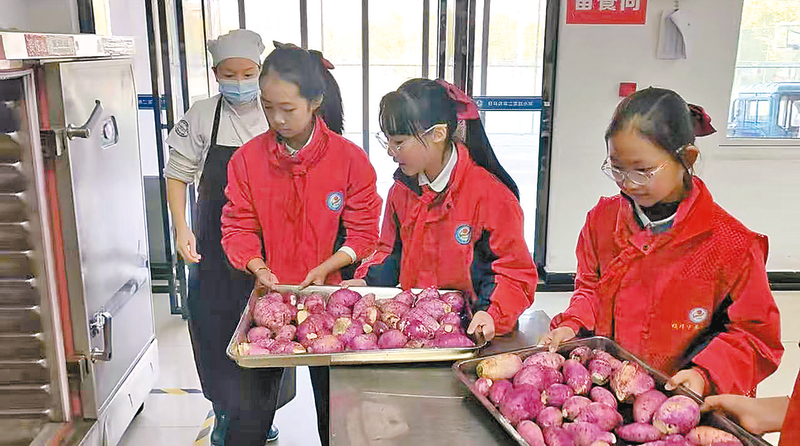 当烤红薯和蒸红薯都端上桌时,学生围坐在一起,开始品尝自己的劳动成果。有的学生还把红薯分享给老师和其他学生,校园里充满浓浓的温情。