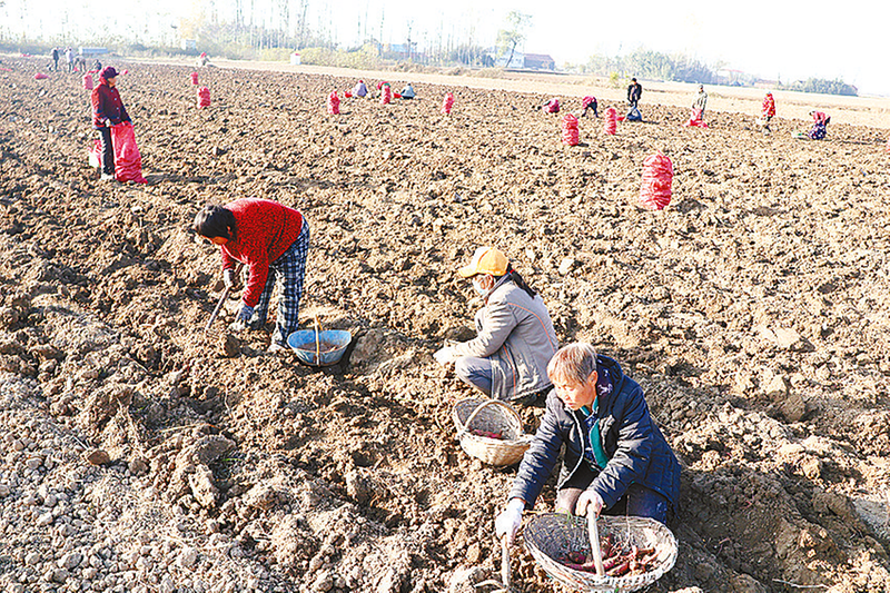 12月10日,正阳县清源街道梅营红薯合作社的村民在收获红薯。该合作社立足资源禀赋,调整农业产业结构,引进优质品种,积极推行高垄宽行的种植方式,带领群众发展以红薯种植为主的特色产业,拓宽了增收渠道。