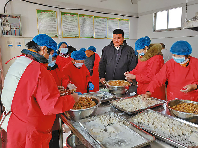 12月15日,上蔡县小岳寺乡工作人员带着提前准备好的面粉、猪肉、萝卜和各类调料走进郭七村学校食堂,为这里的留守儿童包起饺子,用热腾腾的饭菜传递党组织的关怀与温暖。