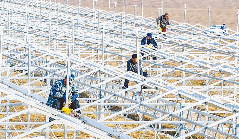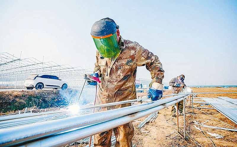 近日,西平县五沟营镇光合科技农业大棚建设现场一派繁忙。在现有智能温室大棚基础上,该镇正加快推进新增设施建设。
