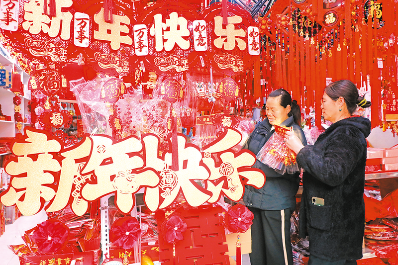 1月16日,随着春节的临近,市区宏大市场饰品店铺挂起了福字、春联、红灯笼、中国结等传统喜庆饰品,吸引不少市民前来选购。