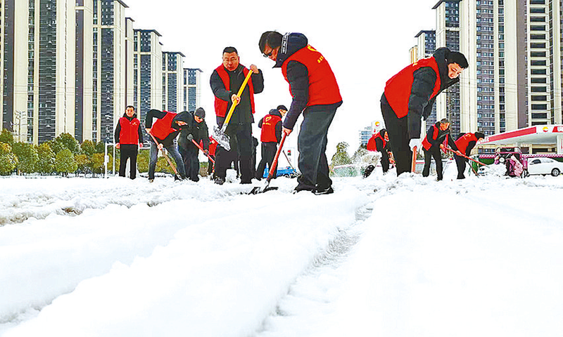 1月20日清晨,大雪停歇,银装素裹的天中大地间,一股清雪扫雪的热流迅速涌动。一些单位积极行动,干部职工走上街头扫雪除冰,不少市民自发参与,携手清雪、共护出行。