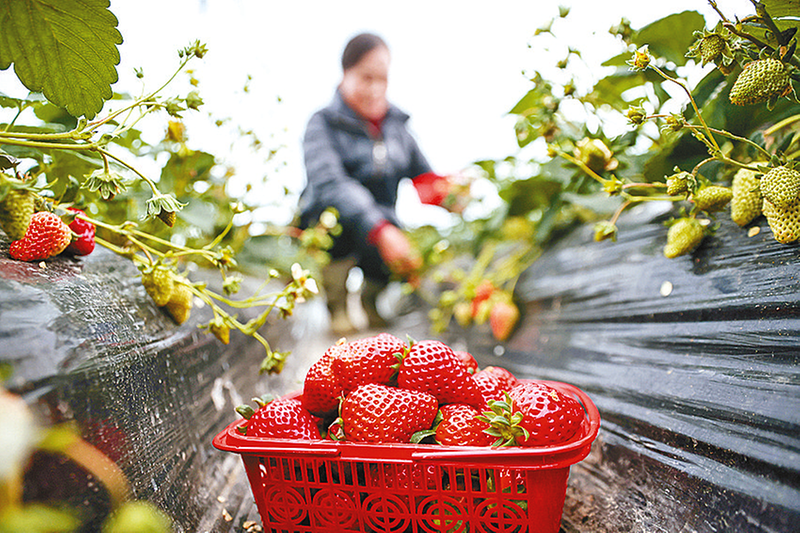 1月20日,农民在浙江省湖州市吴兴区埭溪镇美莓草莓园采摘草莓。新华社发