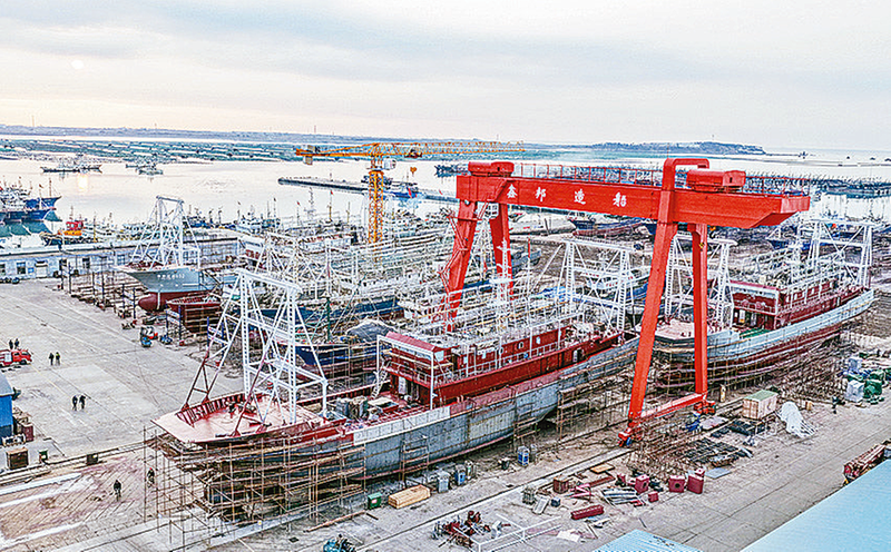 1月28日,在山东省荣成市石岛管理区海工装备产业基地,船舶在维修中(无人机照片)。临近月末,各地企业铆足干劲赶订单、忙生产,力争新年首月“开门红”。新华社发