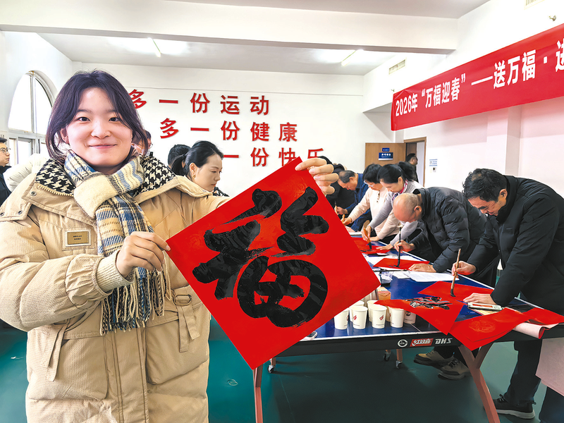 日前,驻马店高新区开展“2026年万福迎春 送万福进万家”书法公益活动,邀请市职工书法家协会的书法名家现场挥毫泼墨,为广大群众送上新春祝福。此次活动不仅为即将到来的新春佳节增添了喜庆色彩,还让中华优秀传统文化在基层生根发芽,切实丰富了广大群众的精神文化生活。