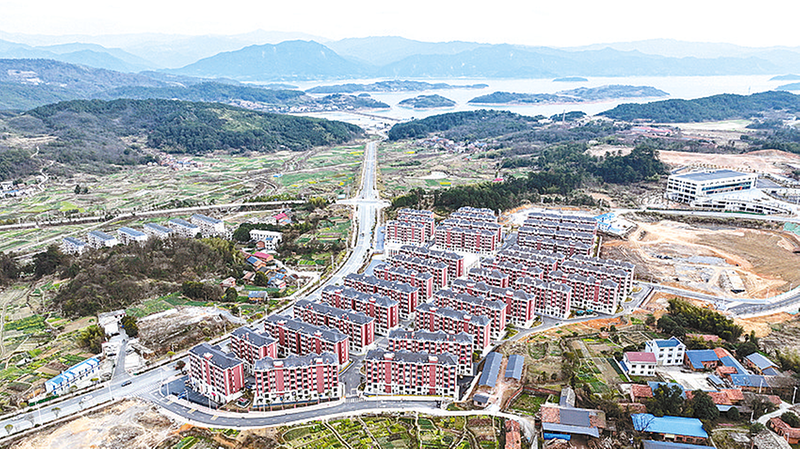 这是2026年2月4日拍摄的资兴市兴宁镇集中安置点福兴苑小区(无人机照片)。2024年7月底,受台风“格美”影响,湖南省资兴市强降雨致12.8万人受灾,共6961户群众需分批进行避险搬迁安置,4个集中安置点的886套住房在2025年4月全部交房。新华社记者 陈振海 摄