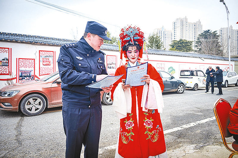 近日,开发区公安分局关王庙派出所创新反诈宣传形式,组织民警深入民间戏剧表演现场,将防骗知识巧妙融入戏曲演出,以群众喜闻乐见的方式普及反诈知识。