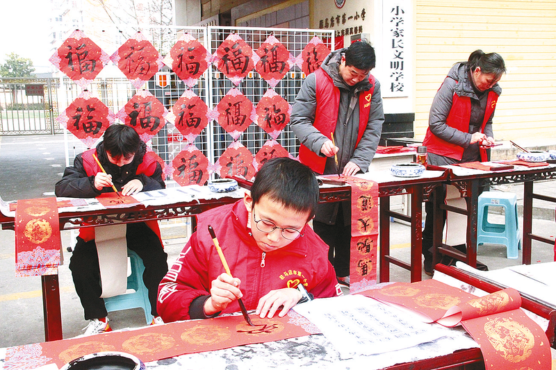近日,市第一小学开展迎新春义写春联活动,200多副手书春联与精心制作的窗花交相辉映,以墨香传祝福,以红纸载年俗,为新春佳节注入浓郁的中华优秀传统文化气息。