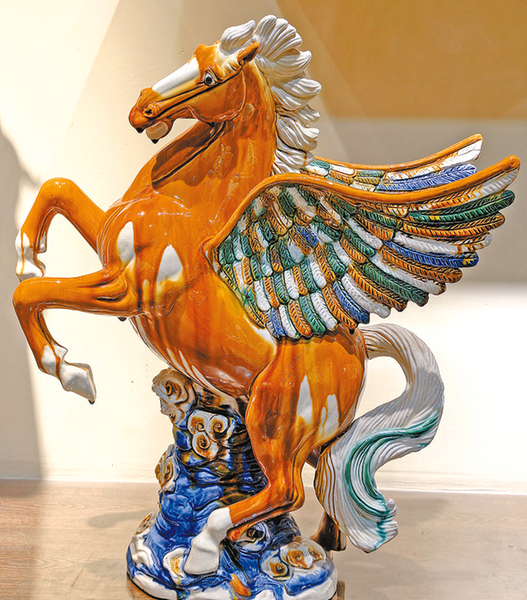 这是2月9日拍摄的河南省洛阳市孟津区三彩小镇唐三彩博物馆内展示的唐三彩马。农历马年将至,河南省洛阳市多地抢抓机遇,依托唐三彩烧制技艺和青铜器制作技艺,生产各类以马为主题的产品,让村民在传承传统文化的同时实现增收。 新华社发