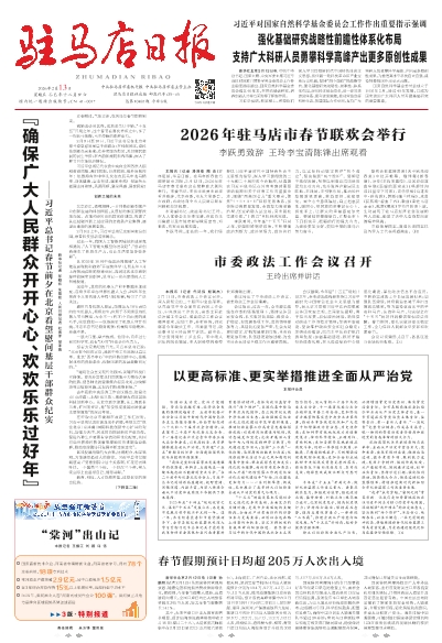 本报讯(记者 滑清泉 周 由)岁序更替,华章日新。在马年新春佳节即将到来之际,2月12日,2026年驻马店市春节联欢会在樊粹庭大剧院举行。市委书记、市长李跃勇出席观看并致辞,代表市委、市人大常委会、市政府、市政协向全市人民致以新春问候和美好祝愿。