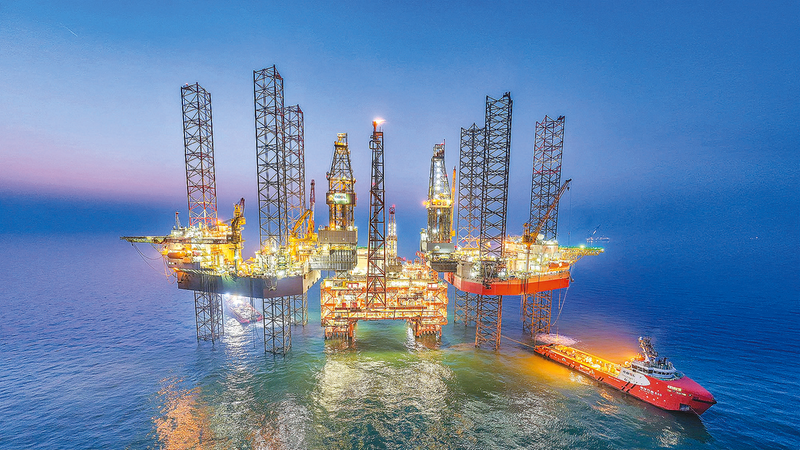 这是2月24日拍摄的渤海油田海上油气平台作业现场(无人机照片)。