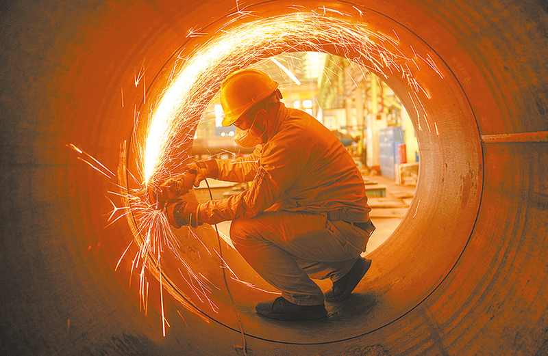 2月24日是春节假期结束后的第一个工作日,各地企业纷纷开工生产。 2月24日,在四川眉山天府新区中建钢构四川有限公司车间,工人赶制钢结构产品。