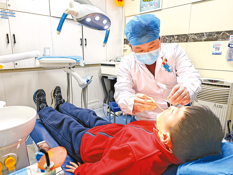 近日,市中医院口腔科医师正在为孩子进行口腔检查。市中医院相关负责人表示,儿童口腔问题不容忽视,乳牙龋坏会影响孩子的咀嚼功能和营养吸收,如果发现孩子有牙痛、牙龈红肿、牙齿发黑等情况,一定要及时就医。同时,也提醒家长要帮助孩子养成良好的口腔卫生习惯,早晚刷牙、饭后漱口,控制甜食和饮料的摄入,定期带孩子进行口腔检查。 本报记者 侯 飞 摄
