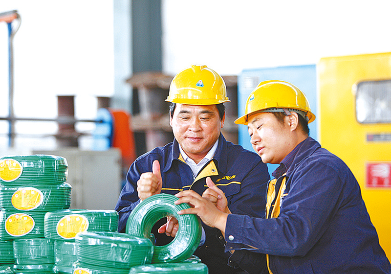 李全岭(左)在车间与技术人员查看产品质量。 2月5日,河南省非公有制经济人士优秀中国特色社会主义事业建设者表彰大会启幕,如同一束阳光,照亮河南非公经济发展的前行道路,为其注入了磅礴的精神动力。在这场汇聚全省非公经济精英的盛会上,100名杰出代表荣耀登台,被授予“河南省非公有制经济人士优秀中国特色社会主义事业建设者”称号。我市4家民营企业脱颖而出,其中河南乐山电缆有限公司董事长李全岭和河南省北斗科技有限公司总经理陈运强这两位来自驻马店经济开发区的企业家,他们凭借卓越表现宛如璀璨星辰,点亮了驻马店市非公经济蓬勃发展的天空,更加掀起向榜样学习的热潮。