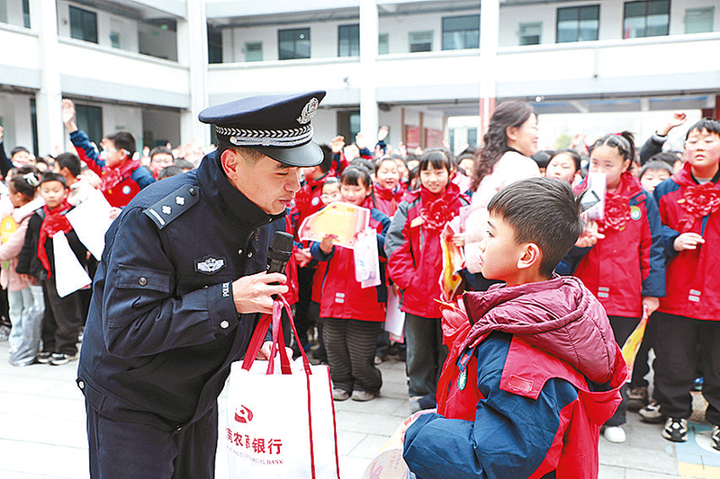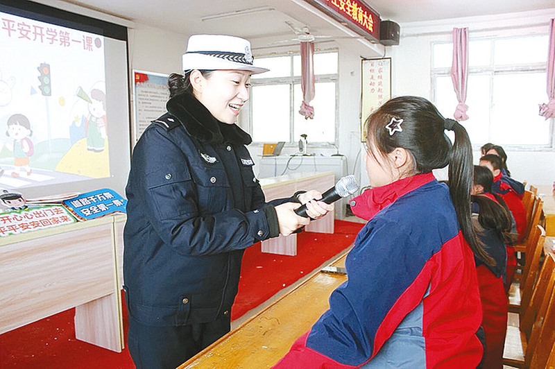 近日,平舆县公安局交警大队组织民警走进古槐街道第四小学,开展“春季开学交通安全第一课”主题宣传活动。通讯员 冯 锦 摄 上蔡县公安局交警大队