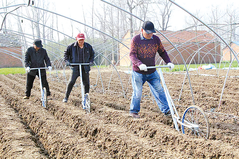 近日,在新蔡县陈店镇永丰农业种植合作社生姜种植基地,一座座塑料大棚整齐排列,40多名村民正抢抓农时,挖沟、打垄、喷洒营养液、放置姜母、覆土,各个工序有条不紊,一幅生机勃勃的“春耕图”在广袤田野上徐徐展开。
