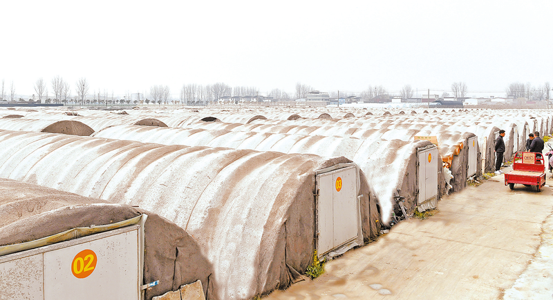 3月18日,记者走进位于西平县谭店乡的金太阳蔬菜种植基地,只见一排排蒜黄大棚在田野间铺展延伸,颇为壮观。