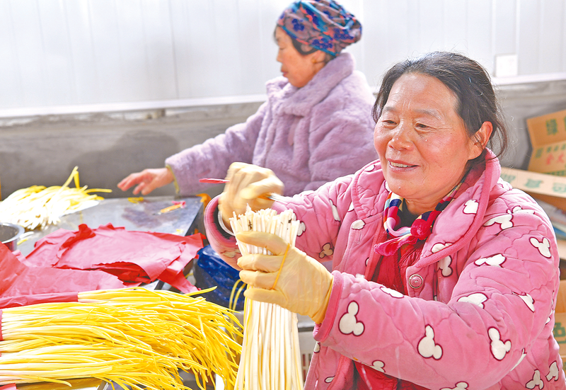 “在这儿干活,一天能拿百十块钱。农忙时还能回去收拾自己的地,守着家门口就把钱挣了,这日子越过越有奔头儿。”正在车间忙碌的员工张俊红笑着说。