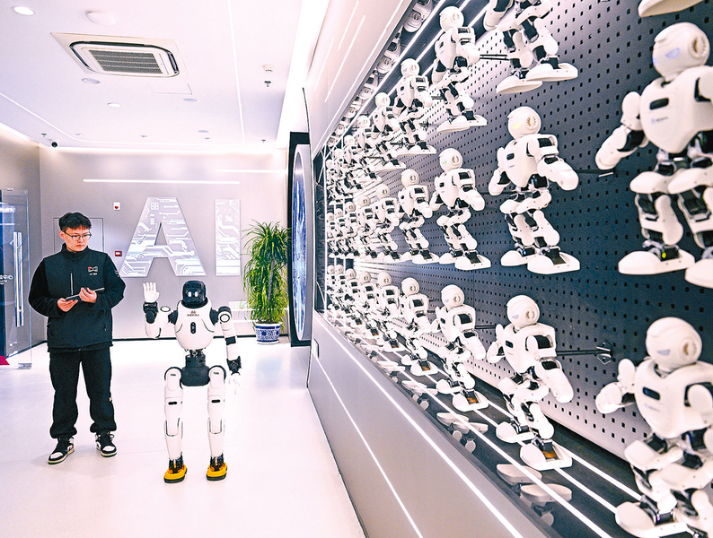 近年来,江苏省将具身智能机器人纳入未来产业重点布局,在南京、苏州等地建设具身智能机器人创新中心、数据采集训练中心,成立江苏省具身智能机器人产业联盟,成员涵盖整机及零部件企业、高校院所等近300家,为产业发展提供核心支撑。在工业机器人领域,江苏省集聚埃斯顿、汇川技术等龙头企业,形成整机与核心零部件协同配套格局。全省工业机器人出口保持高速增长。 2025年12月4日,在南京人工智能生态街区的“AI·模坊”南京智能体集散中心,一款华夏机器人在打招呼。 新华社记者 李 博 季春鹏摄影报道