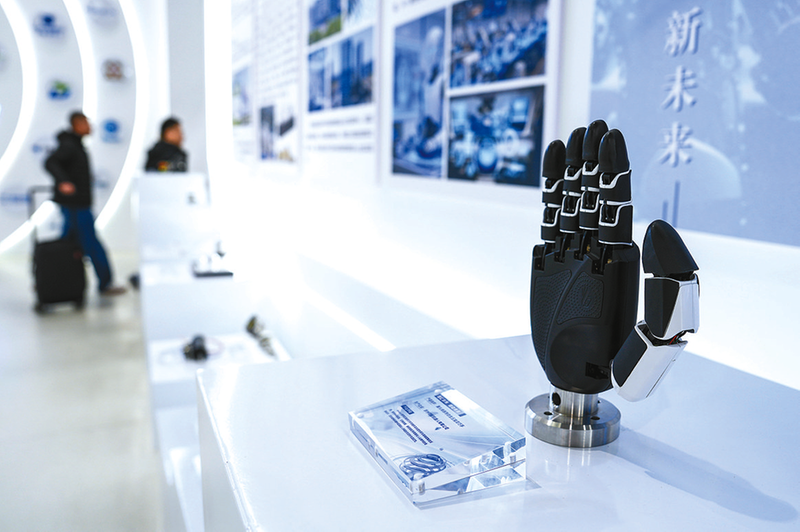 这是苏州市具身智能机器人综合创新中心内展示的“仿生五指灵巧手”(3月10日摄)。