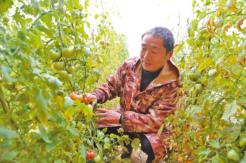 3月18日,泌阳县赊湾镇侯庄村侯东升蔬菜种植基地温室大棚内,番茄植株长势旺盛,翠绿枝叶间挂满果实,长势喜人。