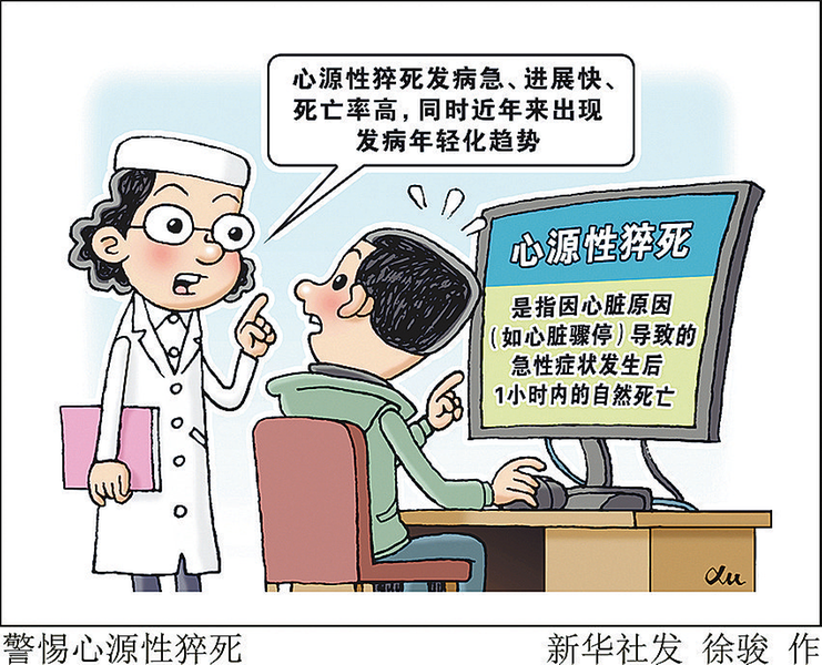 心源性猝死发病急、进展快、死亡率高,同时近年来出现发病年轻化趋势。专家提醒,无论年轻人还是老年人,都要重视心脏健康、保持良好的生活习惯、定期体检,密切关注身体发出的“求救信号”,一旦出现不适及时就医。新华社发 徐 骏 作