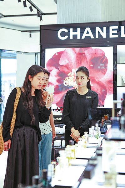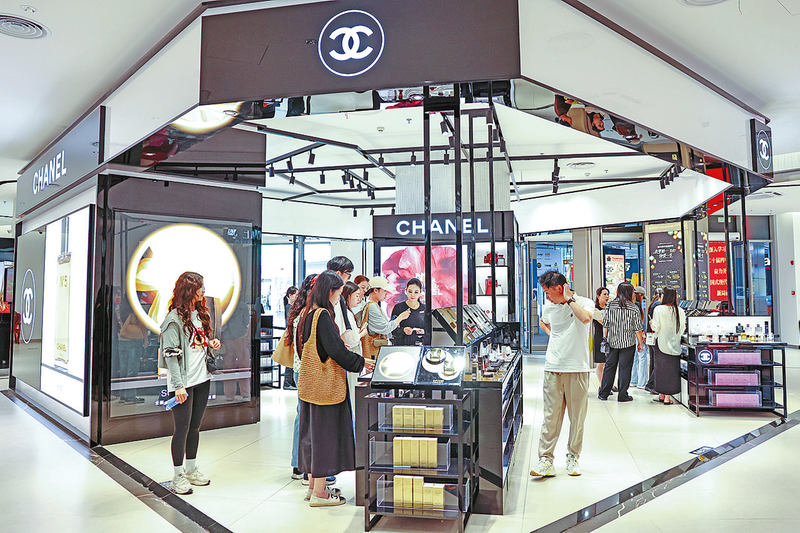 3月25日,顾客在海口日月广场免税店选购商品。3月27日,海南自贸港迎来全岛封关运作100天。封关以来,自贸港以制度集成创新为核心,以高水平开放为牵引,稳扎稳打、有序推进,政策落地见效、活力持续释放,自贸港建设呈现蹄疾步稳、欣欣向荣的良好态势。