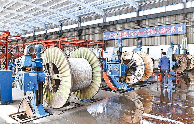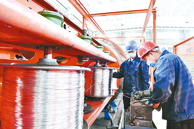 架空导线绞制生产车间一角。本报记者 弓华静 摄
